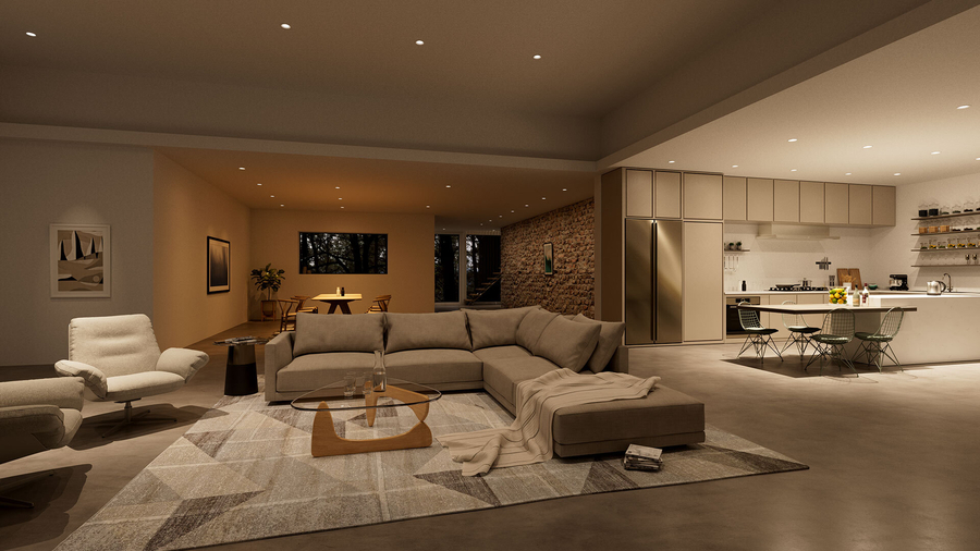 - Morning: The house wakes up with crisp, cool white light that mimics the early sun, helping you feel energized and alert for your morning workout or coffee.